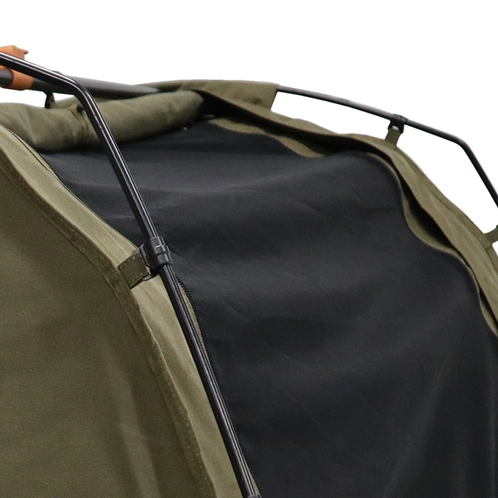 This double size swag is constructed from durable 400gsm proofed polycotton canvas, with robust stainless steel dome poles, and super-fine insect mesh – so it’s made to last on your outdoor escapades. For interior comfort, this swag has a 70mm hi-density thick foam mattress with a protective cover and a HF welded PVC bucket floor to protect from sodden ground a. When the skies are grey, the full zip down storm covers and all-weather awnings provide versatile protection, and when the weather is warmer, ventilate through the mesh end windows.