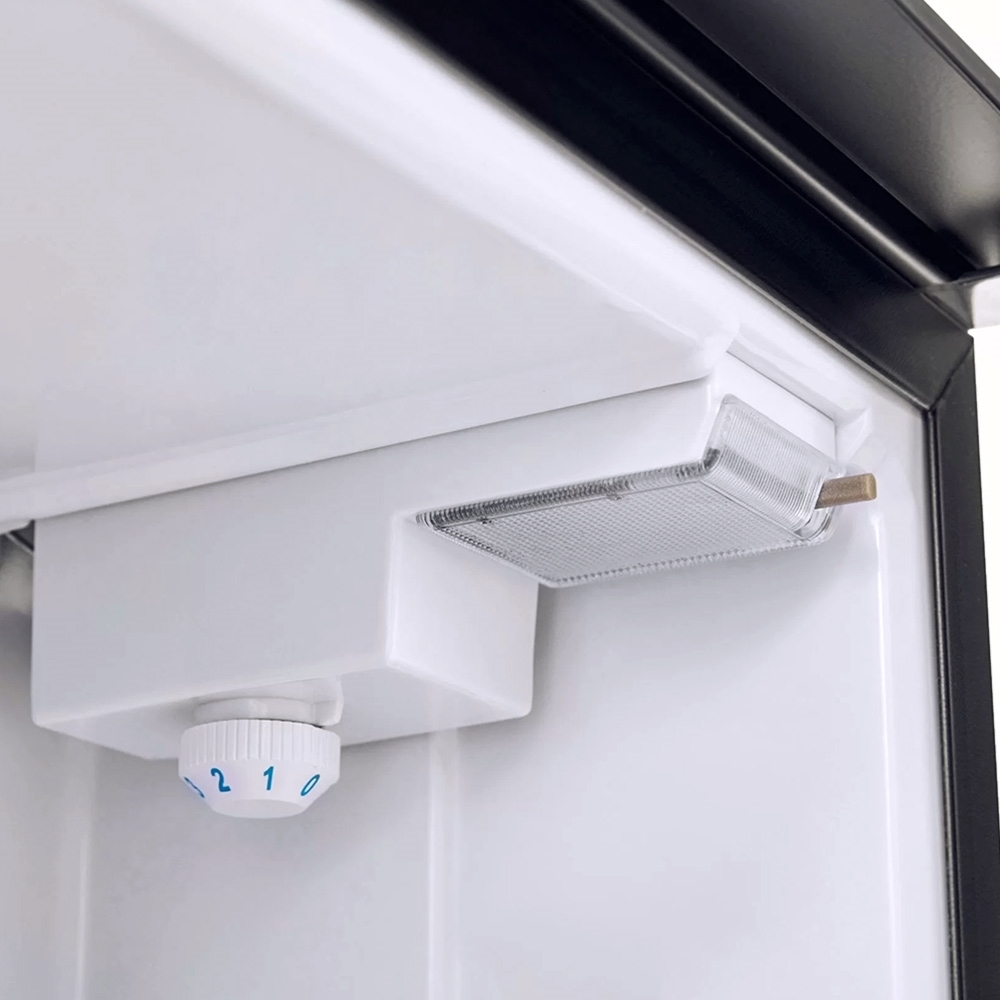 With a 50L capacity, this is the smallest 12V/24V upright fridge in Bushman’s DC-X range. It uses a top-mounted variable speed drive Secop Danfoss BD35 compressor with an oversized cooling system to maximise efficiency while keeping the overall power consumption low. It’s designed to go off-road and features soft custom rubber feet to help stabilise the fridge when you’re navigating uneven terrain. The internal 6L freezer compartment uses a 360° integrated cooling element and is purposefully deep and narrow to leave more room in your fridge.