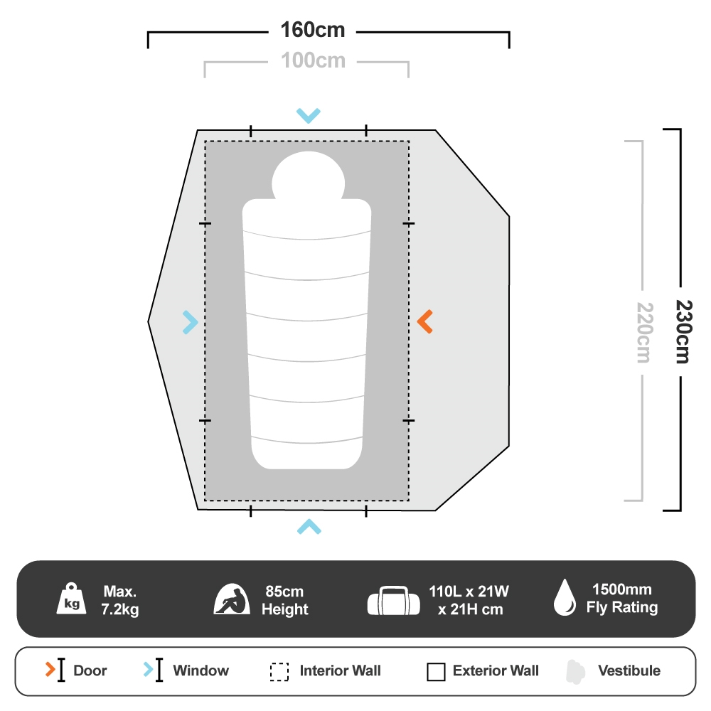 Boasting a lightweight but robust frame, this tent offers a simple, one-person operation – so you pull up, set up, and be settled by sundown. A durable 150D polyester construction bears the rough and tumble of outback brutality, while a robust PE floor withstands the wear and tear – the ultimate butler beneath your feet. Draw out those arvo hangouts with superior airflow thanks to ventilation through door, window, and ground vents too.