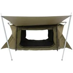 The awning is made from new robust 320 gsm polycotton grid ripstop canvas, with an updated lightweight box tube alloy rafter system, and an aluminium swivel hinge system on both ends. It will span 6m along your vehicle and has two pivoting alloy telescopic leg poles which can be packed away on the rafters. The good news is that this beauty can be mounted on either side of your vehicle.