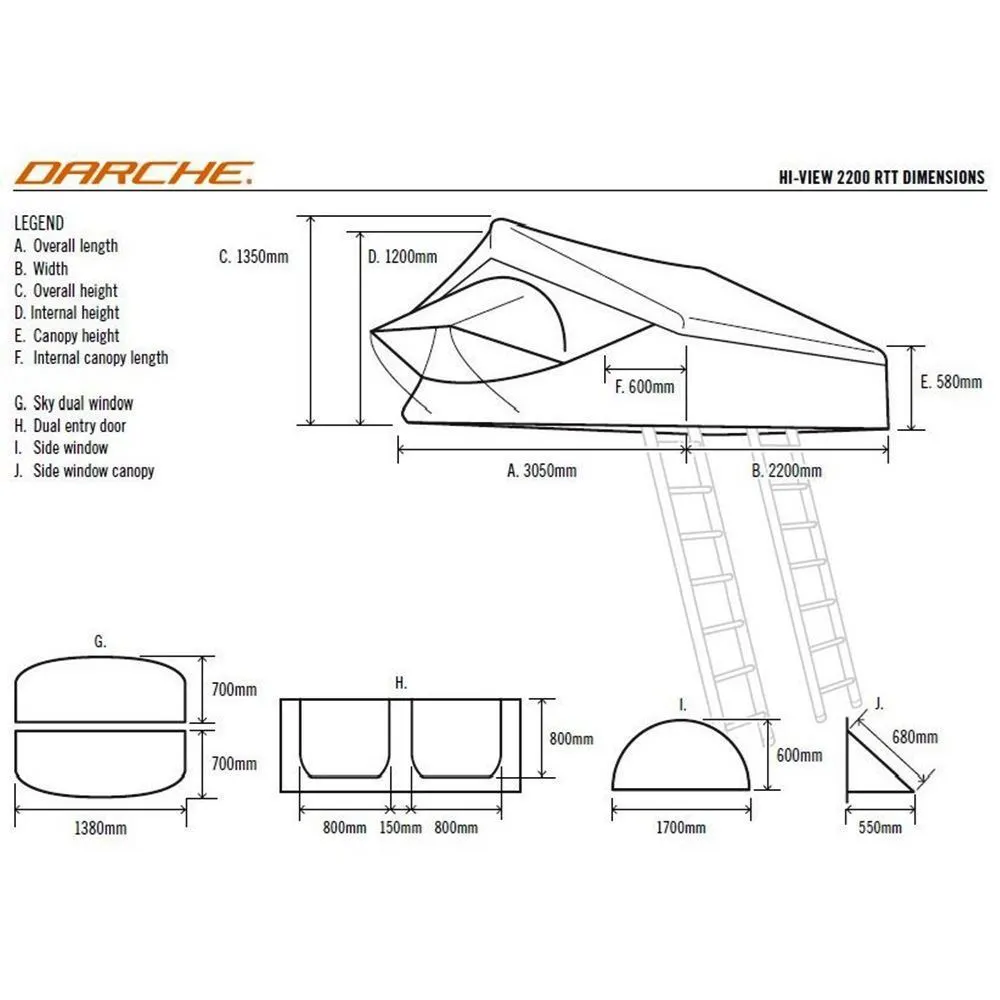 Sleep four people on top of your wagon or camper trailer with the Hi-View 2200 RTT from Darche.