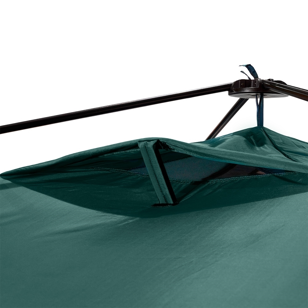 This shelter is designed with an easy instant frame with quick-release buttons to set up or pack down in a flash. It’s large enough to accommodate the whole family, yet folds into a lightweight, compact size for easy storage in the car. Its fabric is a 150D PU coated polyester with a 600mm waterhead rating, with a frame of 22mm powder-coated steel. Roof vents allow for added ventilation, while built-in sand pockets are perfect for the beach – complete with steel pegs, guy ropes, and a carry bag.