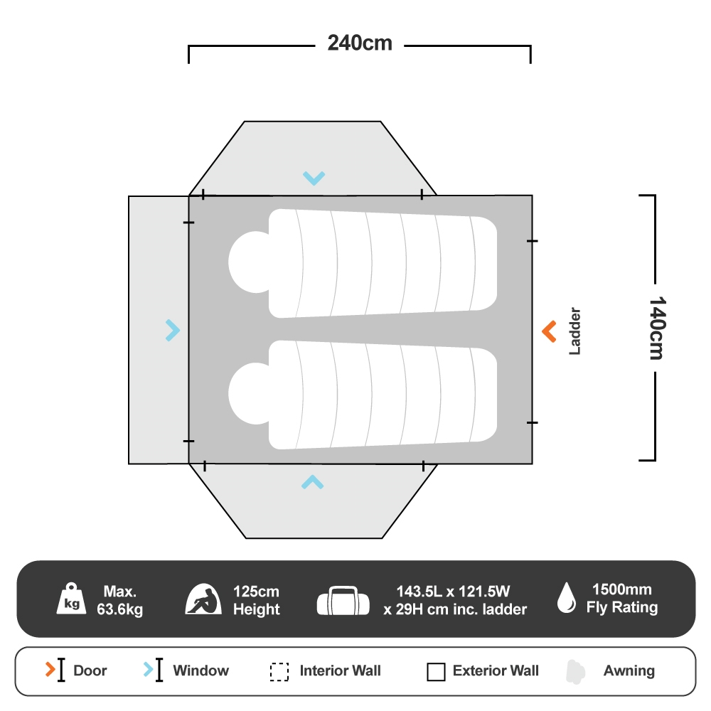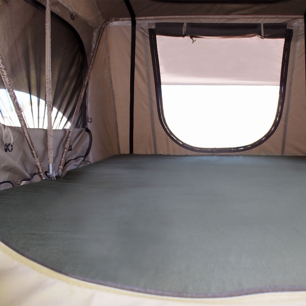 With a convenient low-profile pack down, the Panorama is made from 1500mm PU waterproofed 320gsm Ripstop canvas, with a HD compressed checker-plate base board and a PVC tonneau cover for durability. The quality construction features seam-sealed twin needle lock-stitched seams, and reinforced bar tack stitching on all the stress points for your peace of mind. It’s got a zippered window so you can stargaze as you sleep on the included 50mm high-density open-cell foam mattress, and a tropical fly to prevent condensation.