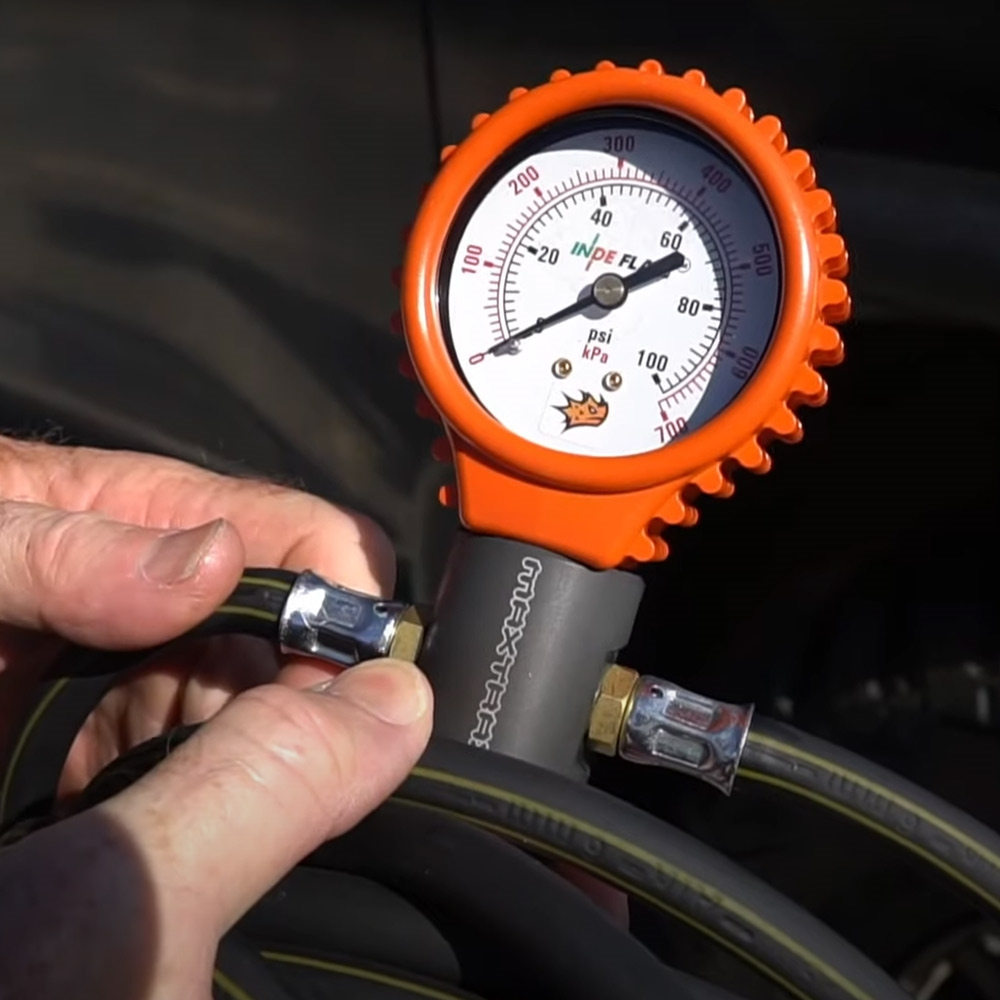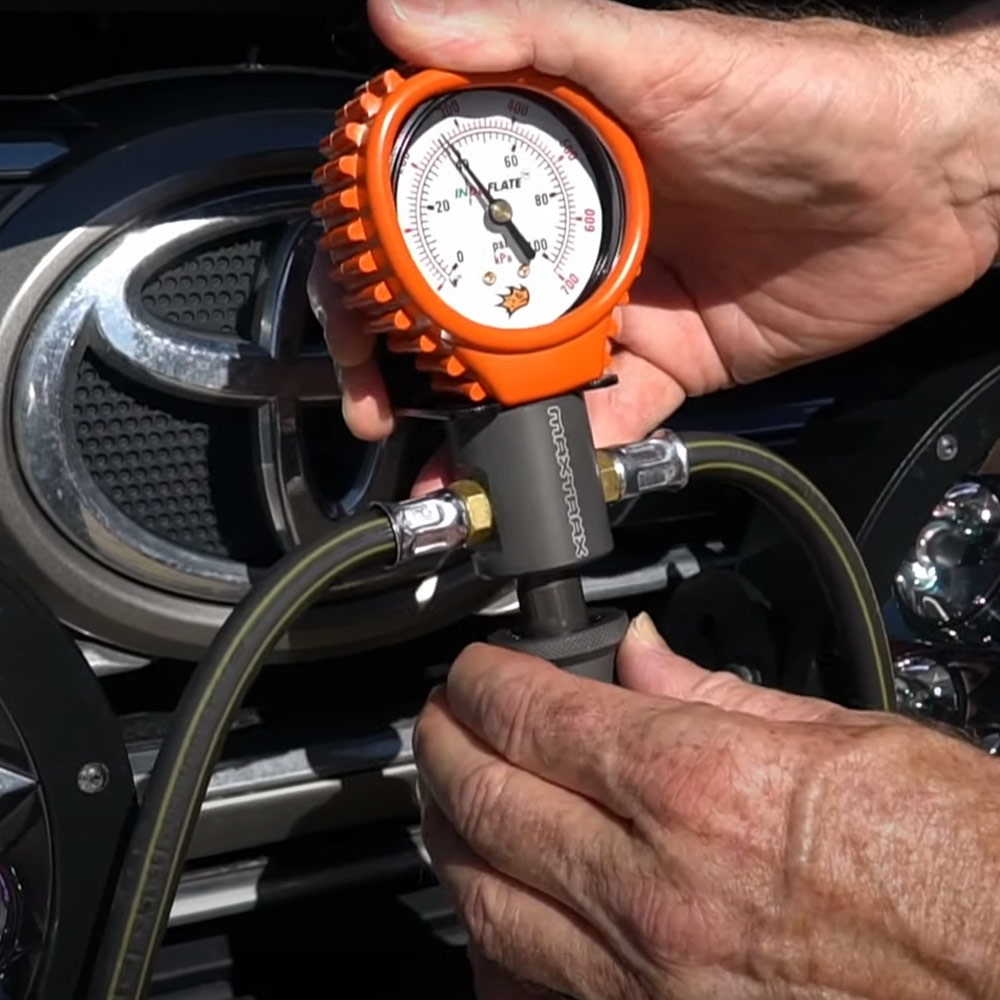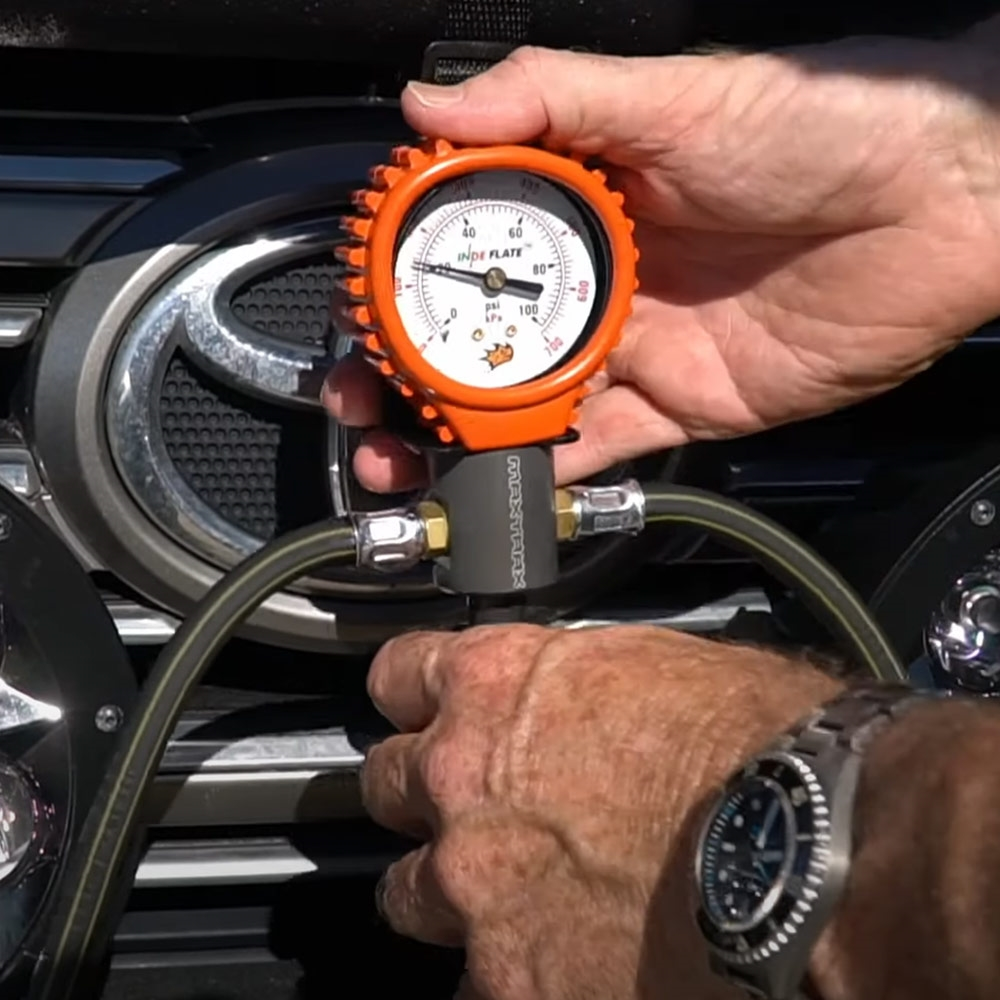 To deflate, simply attach the 100psi pressure gauge to the bull bar via the included bracket, connect the hose to your tyre valves, and push the slide release on the pressure gauge to begin deflating. To inflate, ensure the slide release valve is locked to ensure pressure on the gauge, and connect the compressor hose to the base of the Indeflate gauge. On reaching your desired pressure, pull the slide release to cease deflation, or remove your compressor hose to stop inflation – then safely stow, and hit the road!