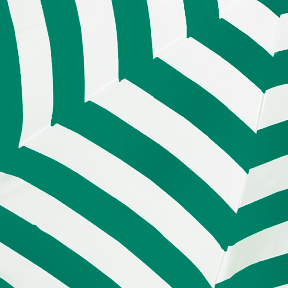 Embrace bay life thanks to its screw-in base for security on the sand and soft surfaces, supporting a robust steel frame for a sturdy seaside setup. Draped on top is a smart green and white printed canopy, silver-lined for further protection from the sun. Plus, enjoy convenient transport from the back seat to the beach thanks to the carry bag with shoulder strap.