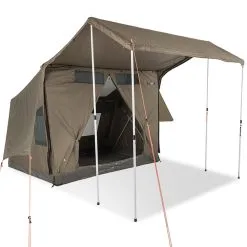 Keeping all the beloved original features like the 30-second setup, high quality 8 oz Ripstop polycotton canvas, the large attached awning and the whizz-bang modular design. But… wait for it… it’s now gone to the next level with a SkyMesh Skylight built into the roof with easy internal zip open/closure allowing for viewing and great ventilation. It comes with a 210T silver-coated Ripstop polyester fly to provide increased ventilation and reduce condensation. They’ve also rejigged the zips on the awning so if you want to attach accessories like walls, you’ll be even more protected from wet weather.