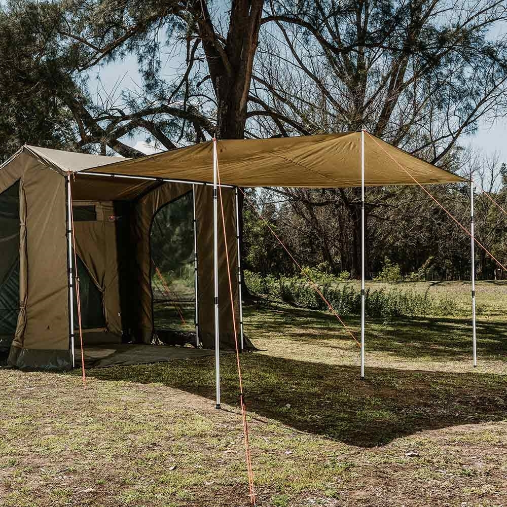 When you need some extra shade or shelter from the rain, or to declare your tent as the party-house, zip on the RV Plus Zip-in Tarp Extension from Oztent so you can get the good times rollin’.
