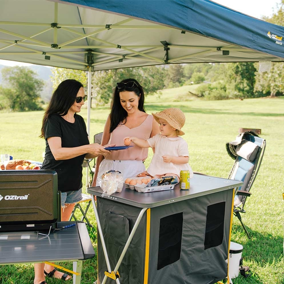 For shade from sunshiny haze, the Deluxe 3.0 Gazebo by OZtrail casts your campsite into cool shadows.