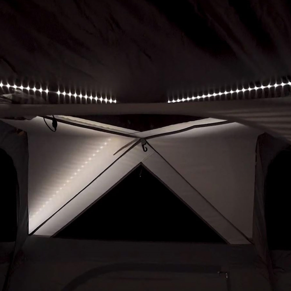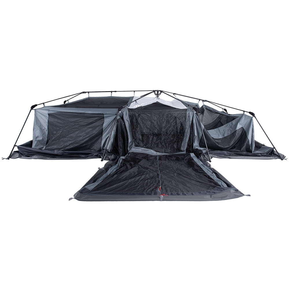 The Triple Hub Frame system sets up in minutes and allows a 4-room configuration, each with a zippered internal divider for privacy. The bedrooms provide enough space for stretchers and queen-sized airbeds and with large front, rear and side doors there’s easy access for everyone. ClimaTech vents and No-See-Um Mesh panels will keep the bugs out and the air circulating so you’ll have maximum comfort even in warm conditions. BlockOut Technology on the fly will also help reduce heat by 10° as well as cutting the daylight so you can keep on sleeping. And let’s not forget the name – Lumos. A trademarked LED lighting system that’s built into the Fast Frame with flexible settings so that you can control the illumination.