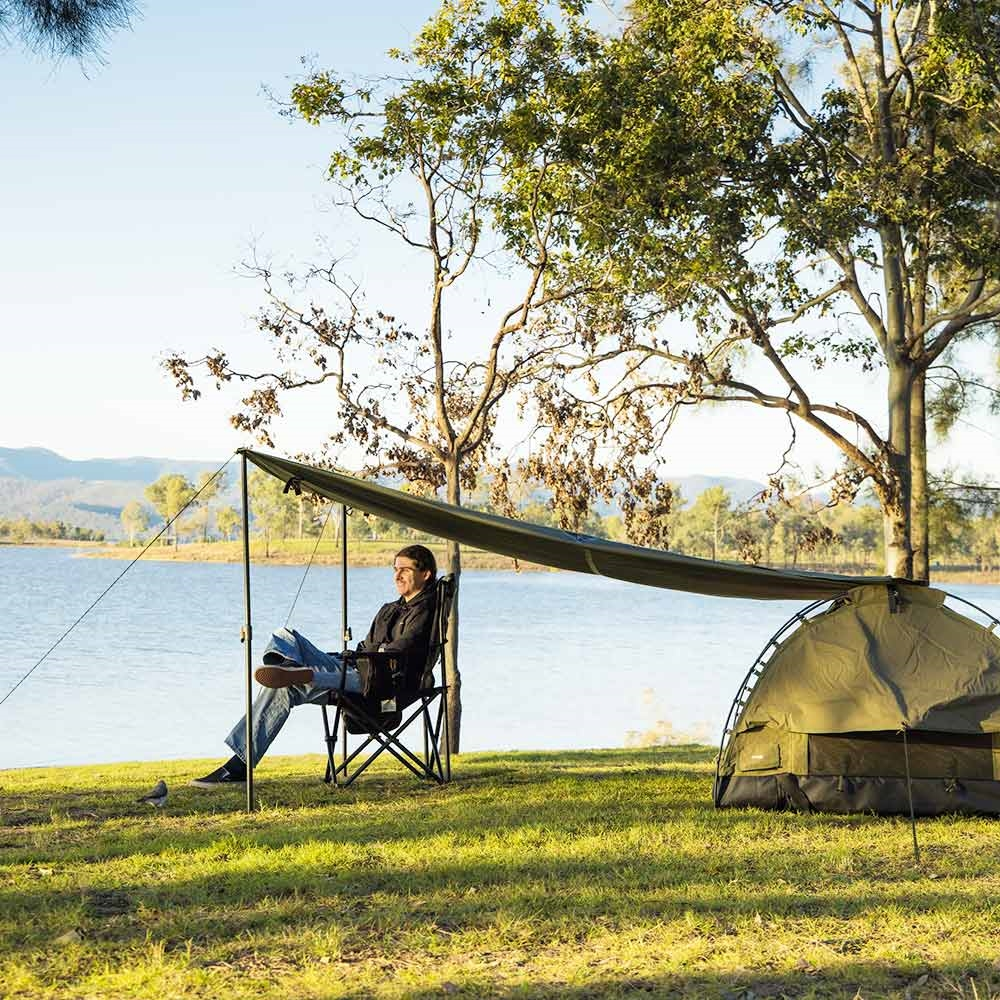 Stretch out like a sunlit horizon under your OZtrail Universal Swag Awning.