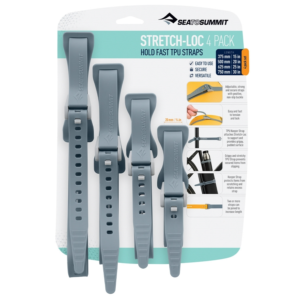 The clever Stretch-Loc All Sizes Straps 4-Pack from Sea to Summit are the multi-purpose straps that are ideal for cycling, kayaking, camping and other outdoor activities.