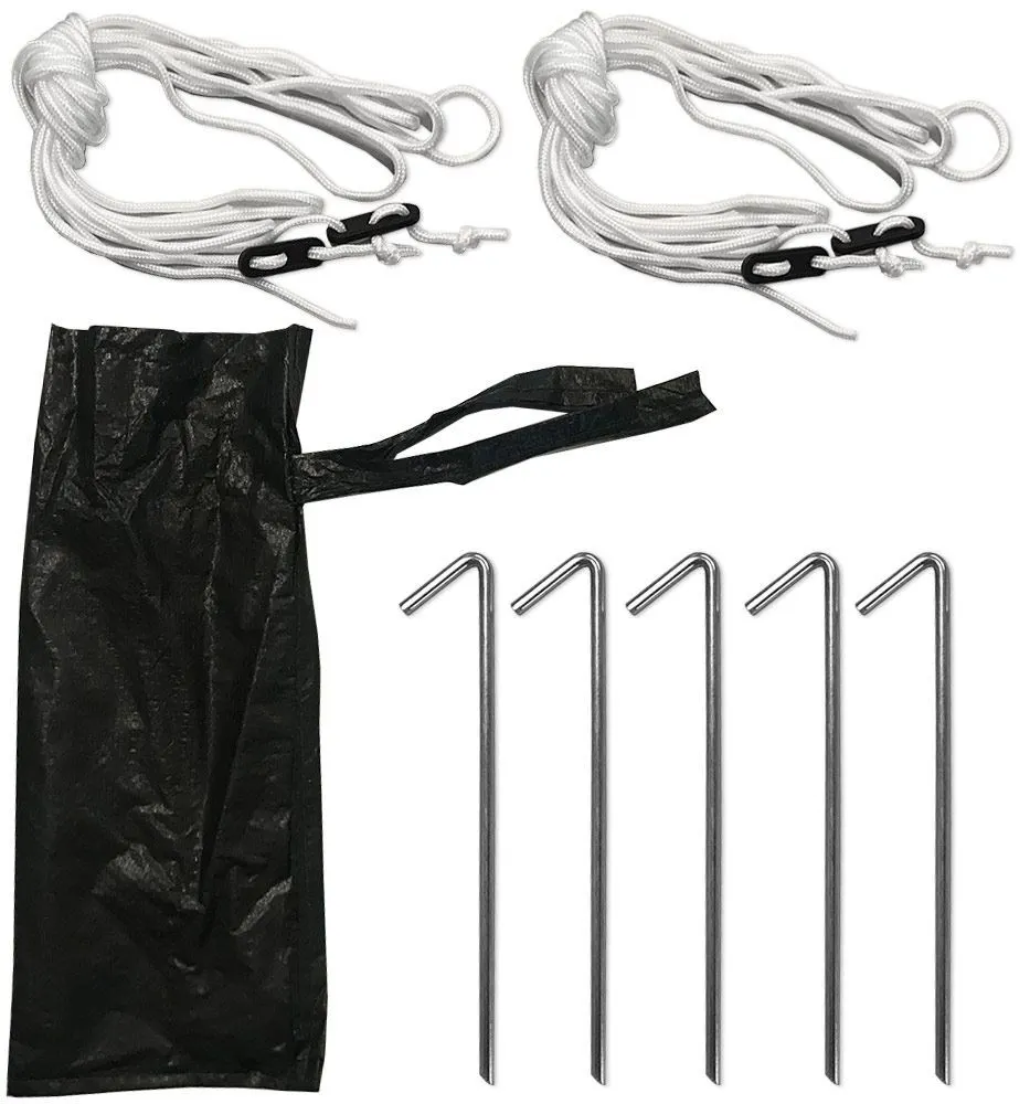 This wall is made from 199gsm 90% shade cloth, which will keep off the glare and heat of the sun. It also comes with all the pegs and ropes you need to set it up at the campsite or caravan park.